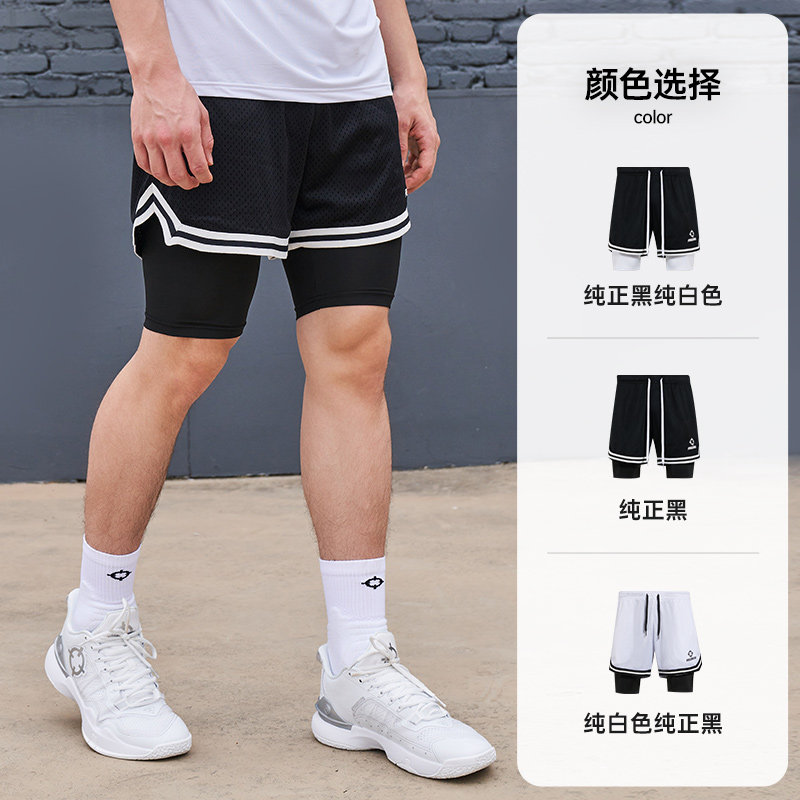 李宁跑步短裤男款速干马拉松田径运动三分裤夏季假两件带内衬健身