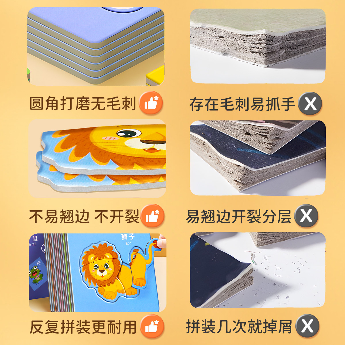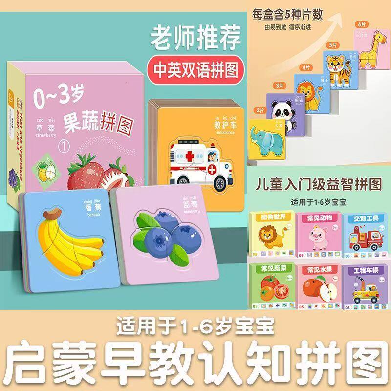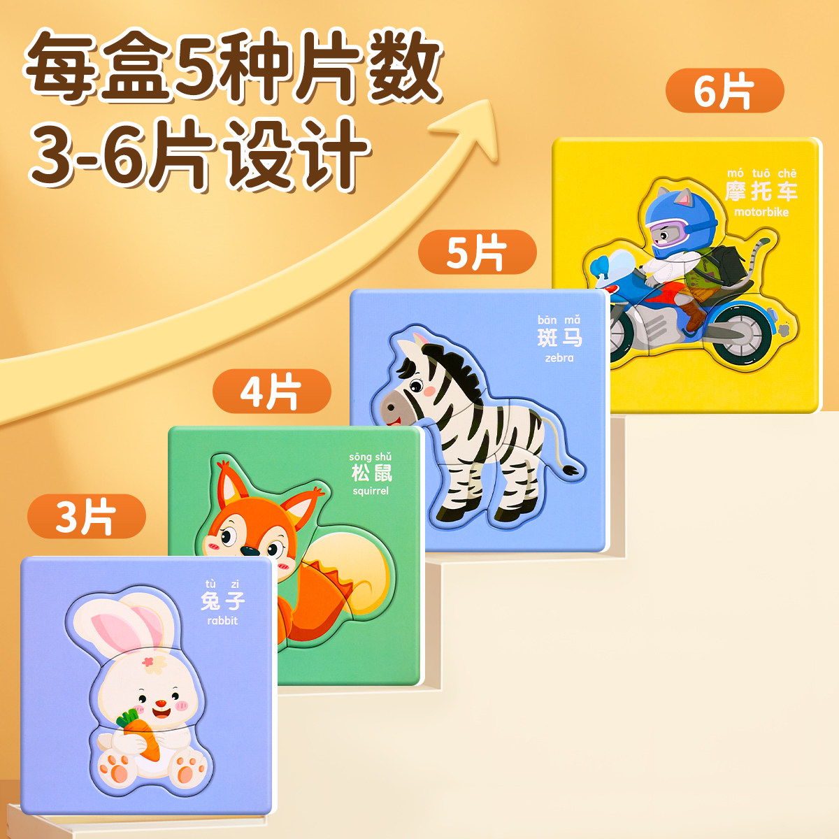幼儿早教启蒙拼图1-6岁动物认知立体拼板儿童3-6片进阶式益智玩具