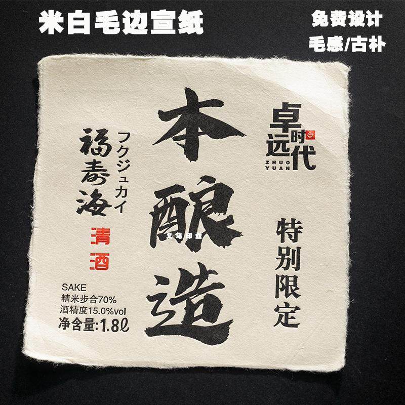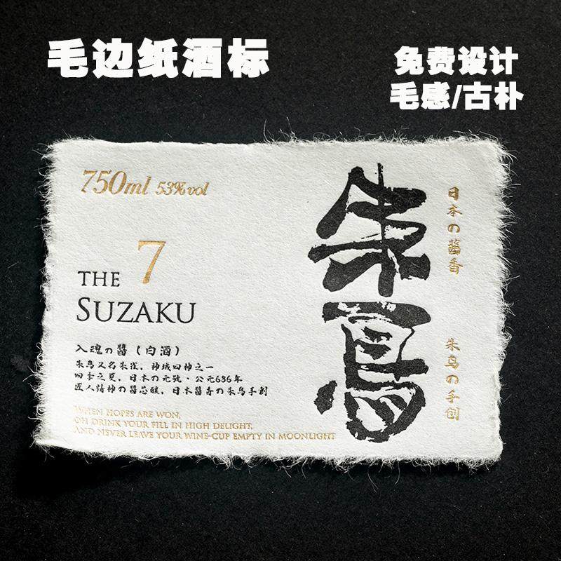 定制毛边纸酒标定做手撕纸标签日式清酒定制活字烫金复古压印贴纸