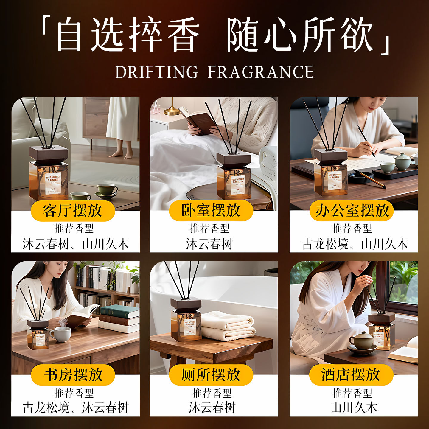 香薰室内持久家用高级无火香氛精油礼盒持久客厅卧室房间卫生间木