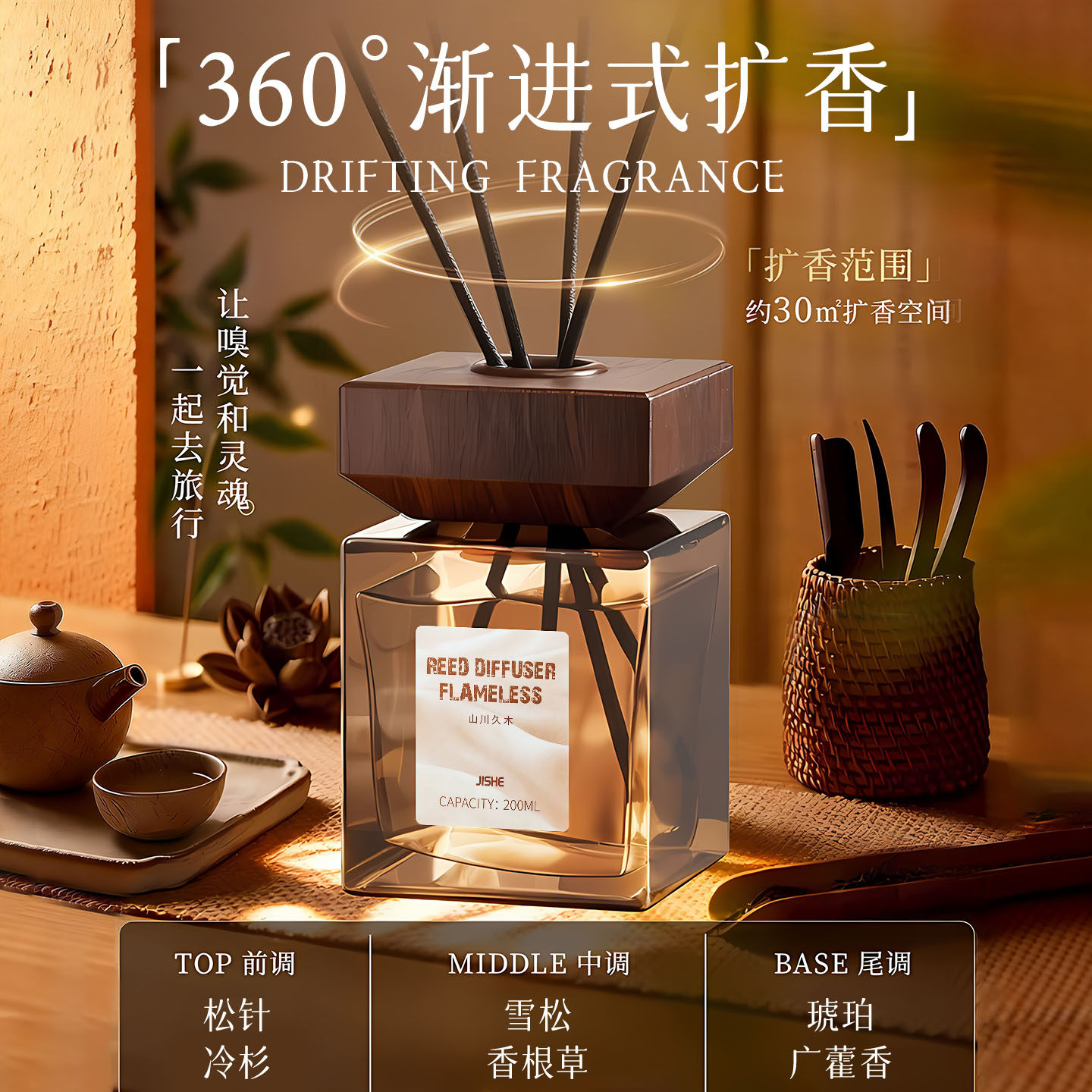 绽家无火香薰精油香薰室内持久留香家用卧室手工香薰圣诞节礼物