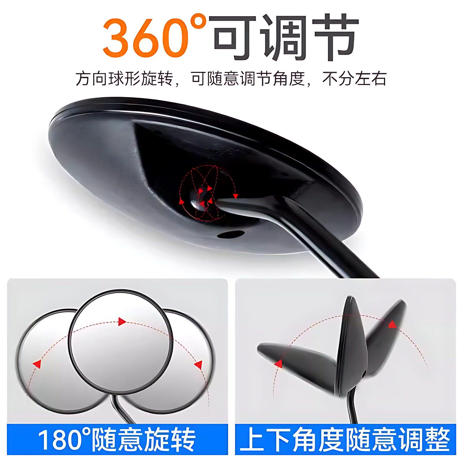 电动车后视镜电瓶车8mm圆形反光镜电动自行车观后镜摩托车通用