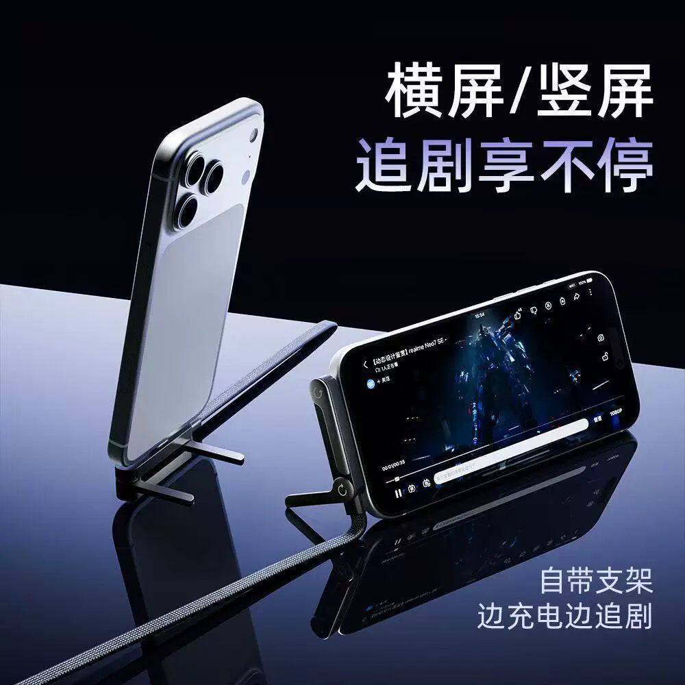 多功能支架数据线240W快充线双Type-C弯头不挡手手机支架游戏看剧编织PD线