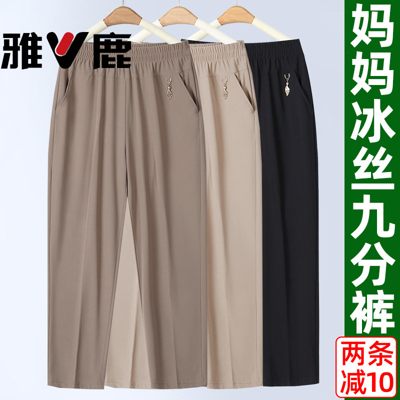 雅鹿妈妈夏季高腰九分裤宽松中老年女夏装薄款裤奶奶直筒休闲裤子