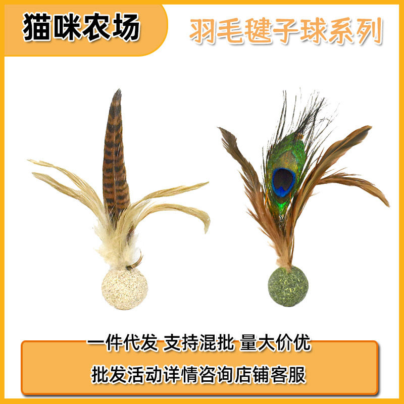 【10送2】猫咪旺农场猫玩具孔雀羽毛毽子球猫薄荷木天蓼玩具趣味