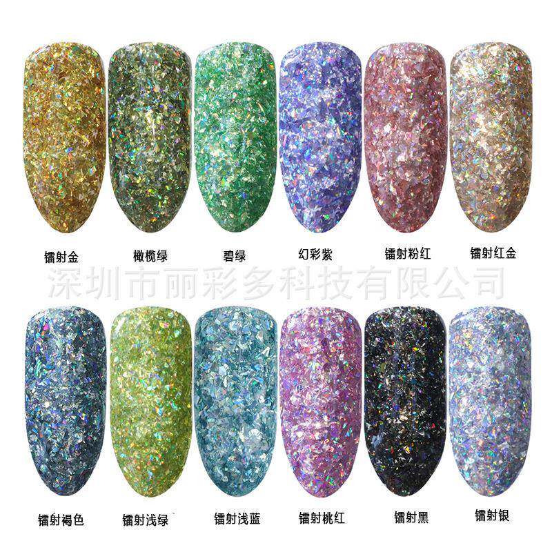 供应美甲彩妆不规则碎片 糖果纸七彩色金葱片 幻彩五彩亮片