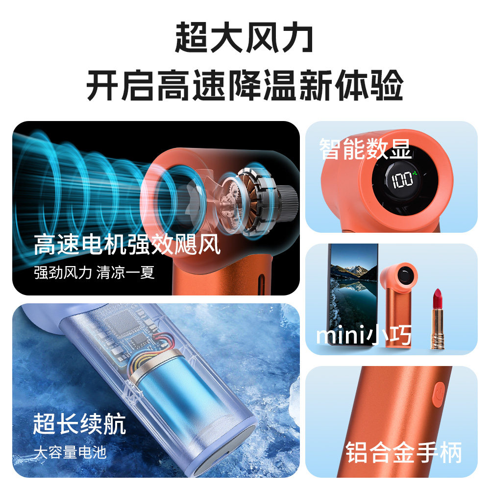 手持小风扇小型便携式随身迷你学生手拿usb充电风扇超静轻音宿舍降温神器冷风儿童涡轮无叶夏天户外2026新款f