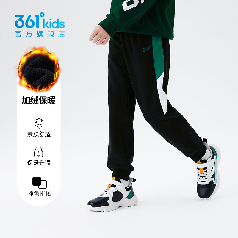 361°童装男针织加绒长裤2025冬季新款中大童儿童保暖运动长裤
