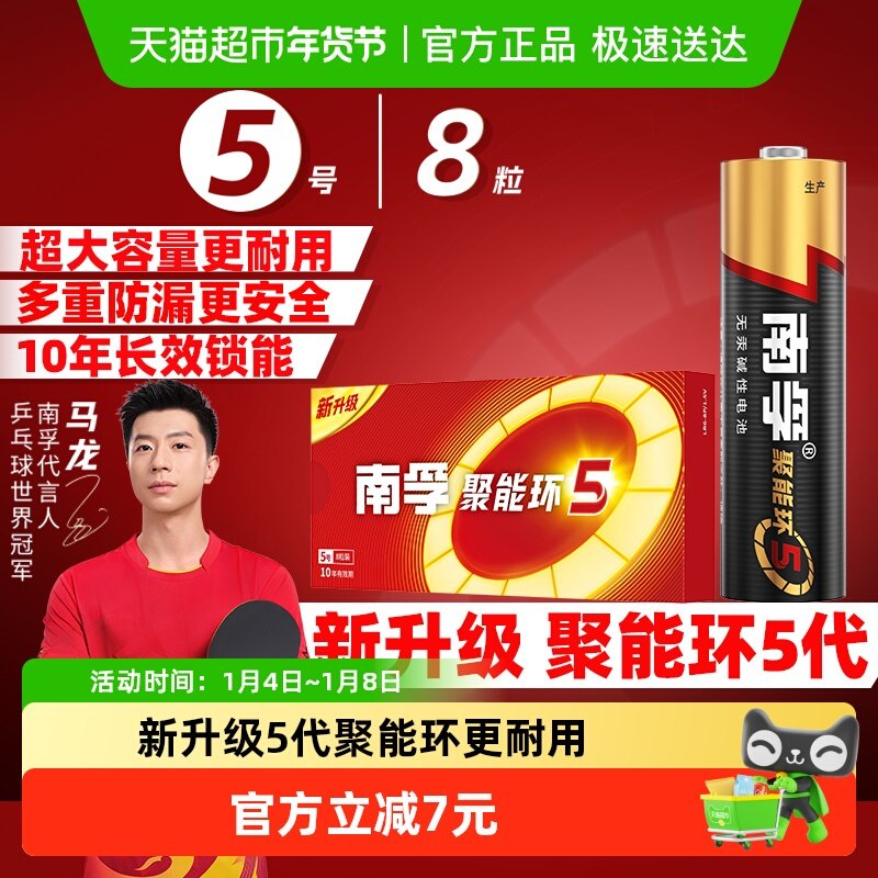 南孚电池5号7号碱性电池五号七号AA聚能环5代玩具电池遥控器鼠标干电池正品空调电视1.5V南孚官方旗舰店官网