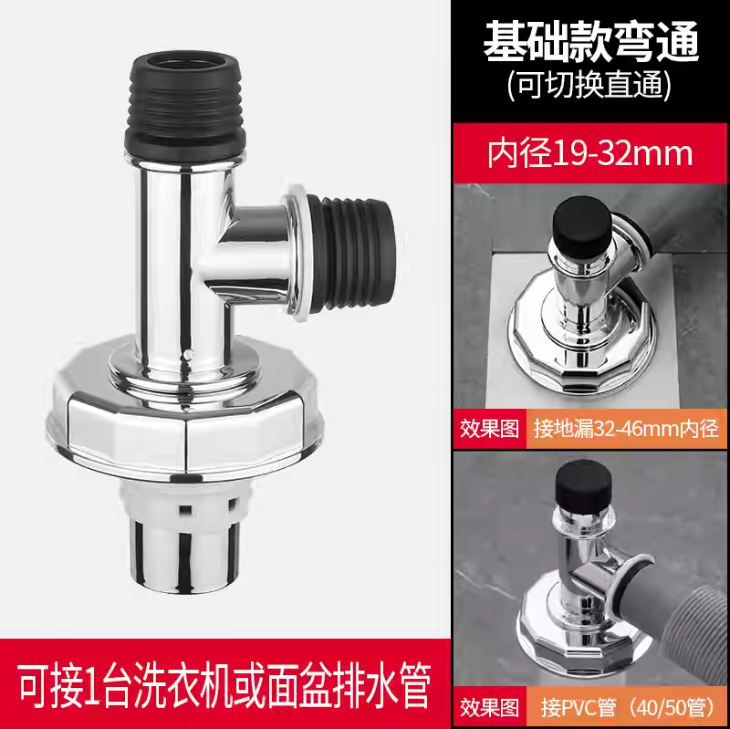 洗衣机下水止逆阀防反水下水管三头通地漏二合一排水管防溢水接头