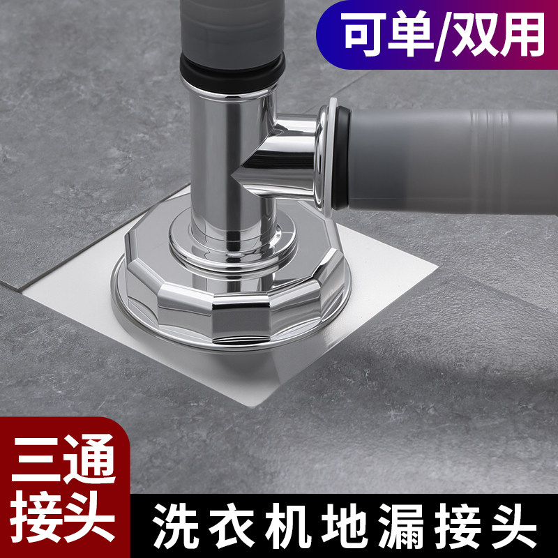 洗衣机下水管三头通地漏双排水专用接头排水管道二合一防臭防溢水