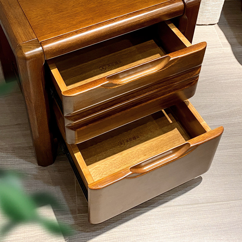 胡桃木床头柜中式卧室家具收纳柜小型储物柜全实木床边柜抽屉柜