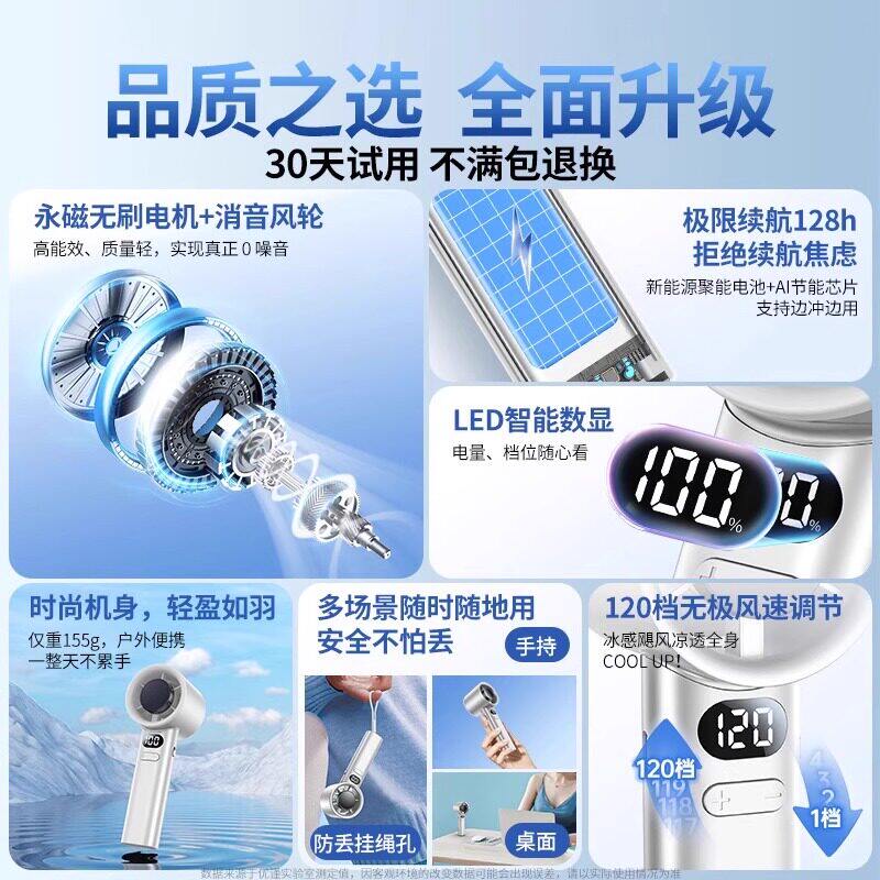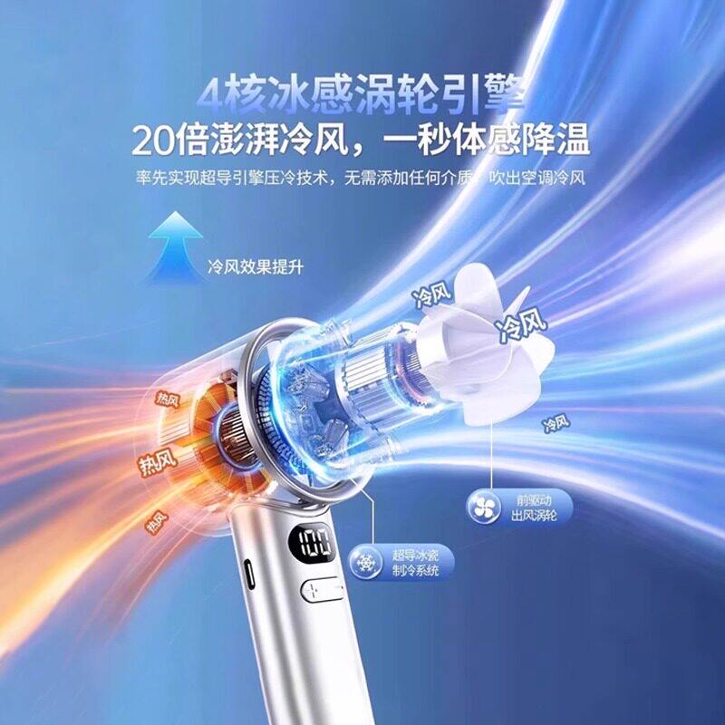 2026新款20000mAh手持小风扇静音制冷小空调办公室学生便携usb随身冰感超长续航挂脖宿舍迷你大风户外风扇