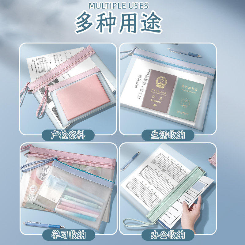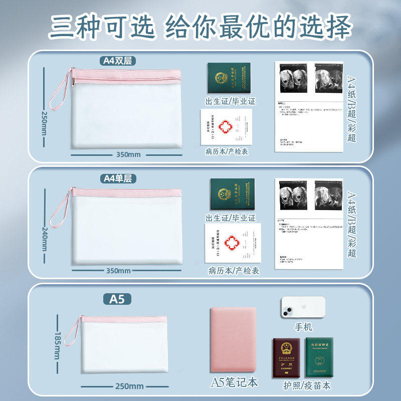 TPU防水文件袋拉链式档案袋产检收纳袋A4双层疫苗本证件收纳包产检手提包学生考试专用袋子a5票据袋A6笔袋