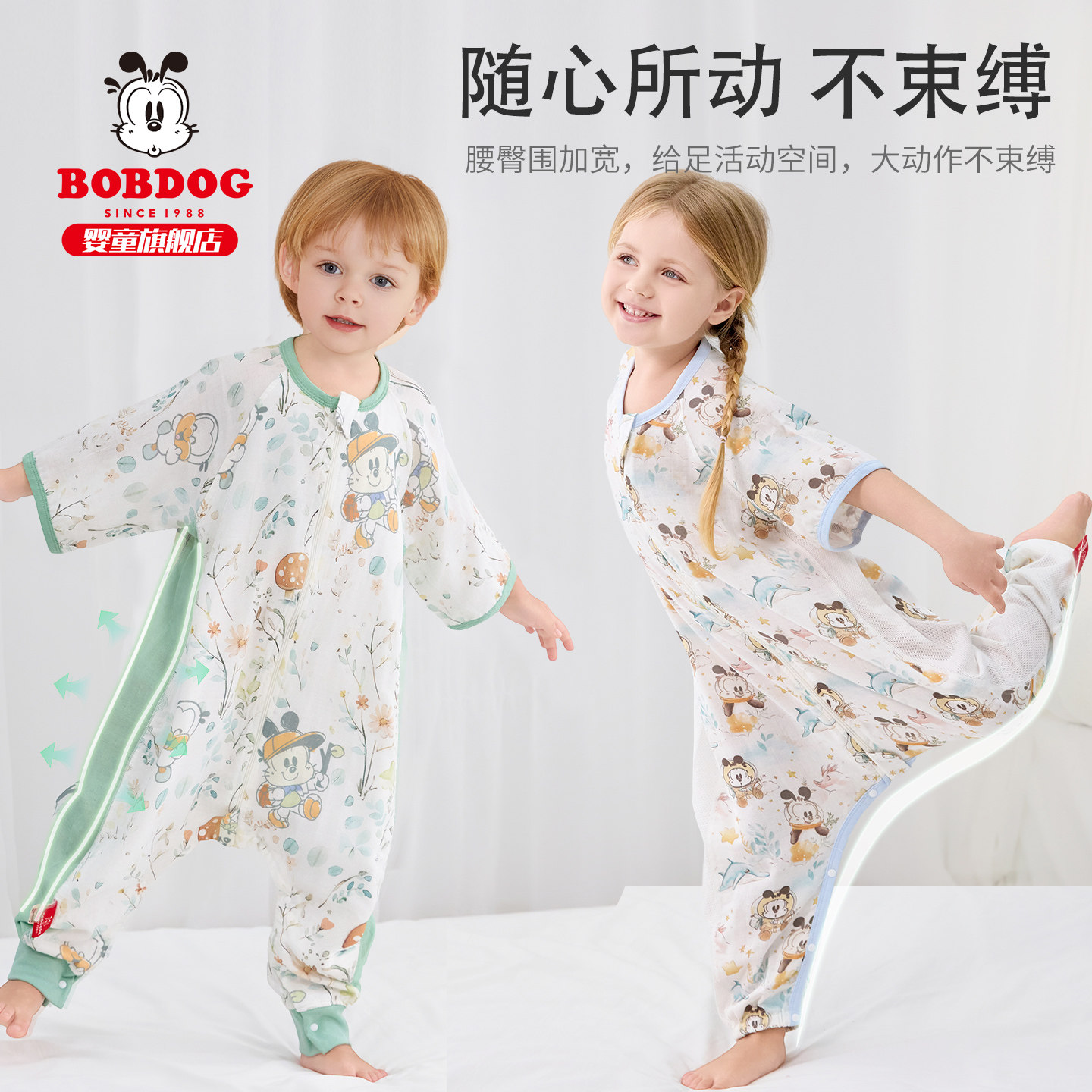 巴布豆纱布睡袋婴儿四季通用宝宝竹棉薄款幼儿分腿小月龄睡觉专用
