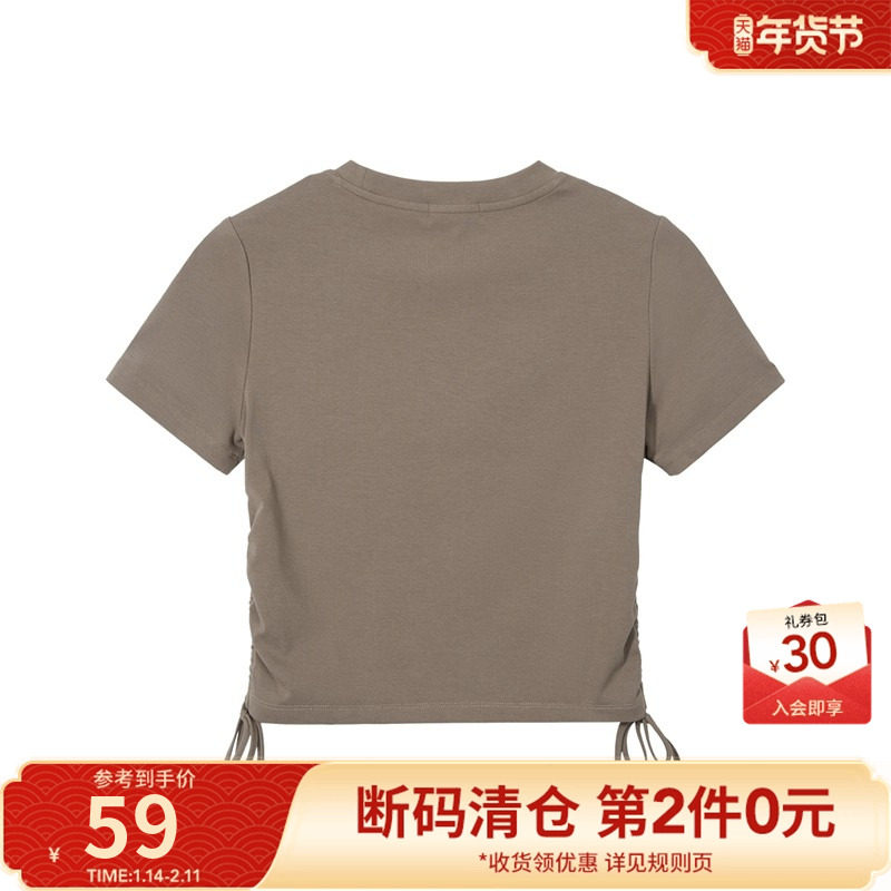 热风2025年夏季新款女士流行个性抽绳显瘦t恤白色T恤修身白色短袖