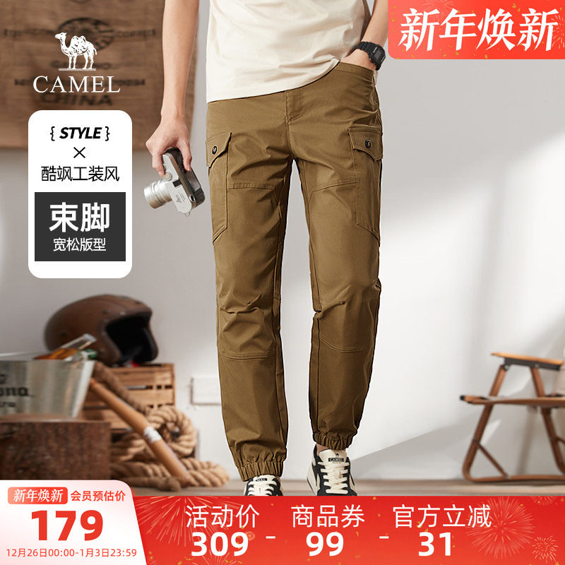 骆驼男装休闲裤男款运动新款宽松透气潮流时尚长裤户外工装束脚裤