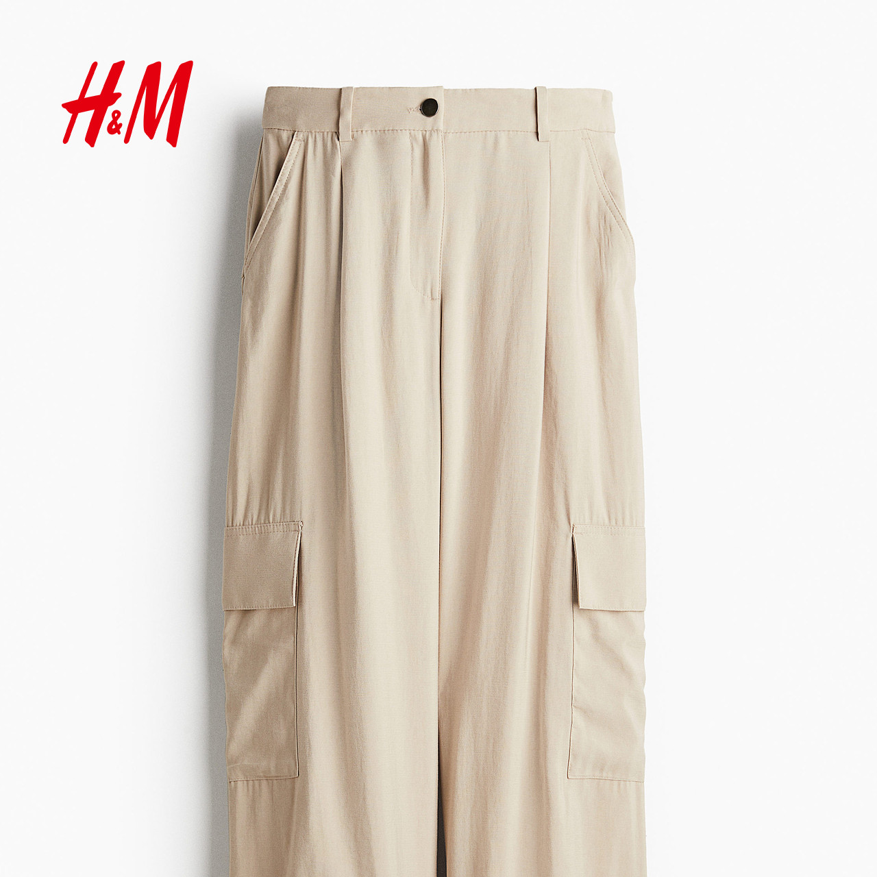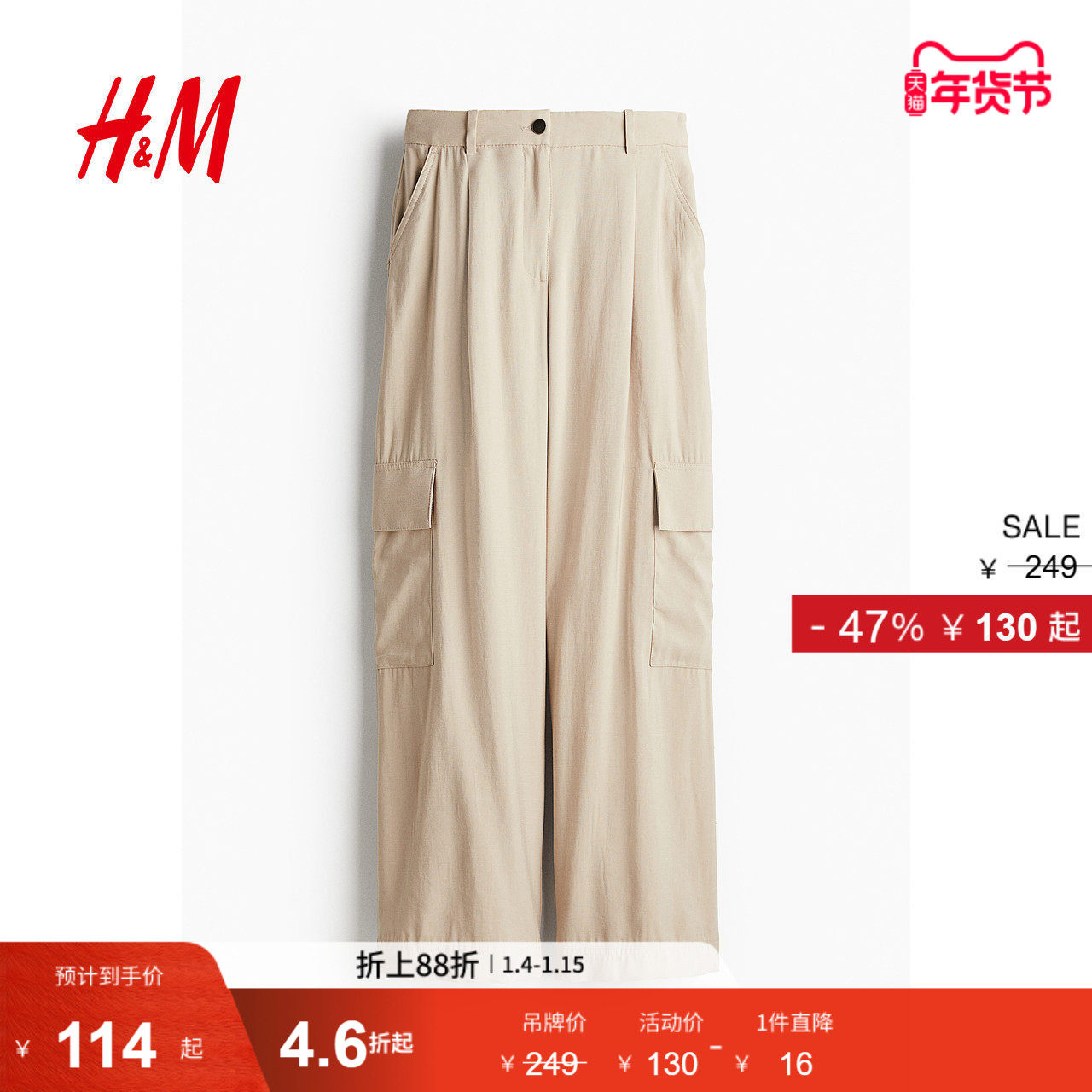 HM冬季女装休闲裤潮流时尚简约宽松阔腿工装裤1237367