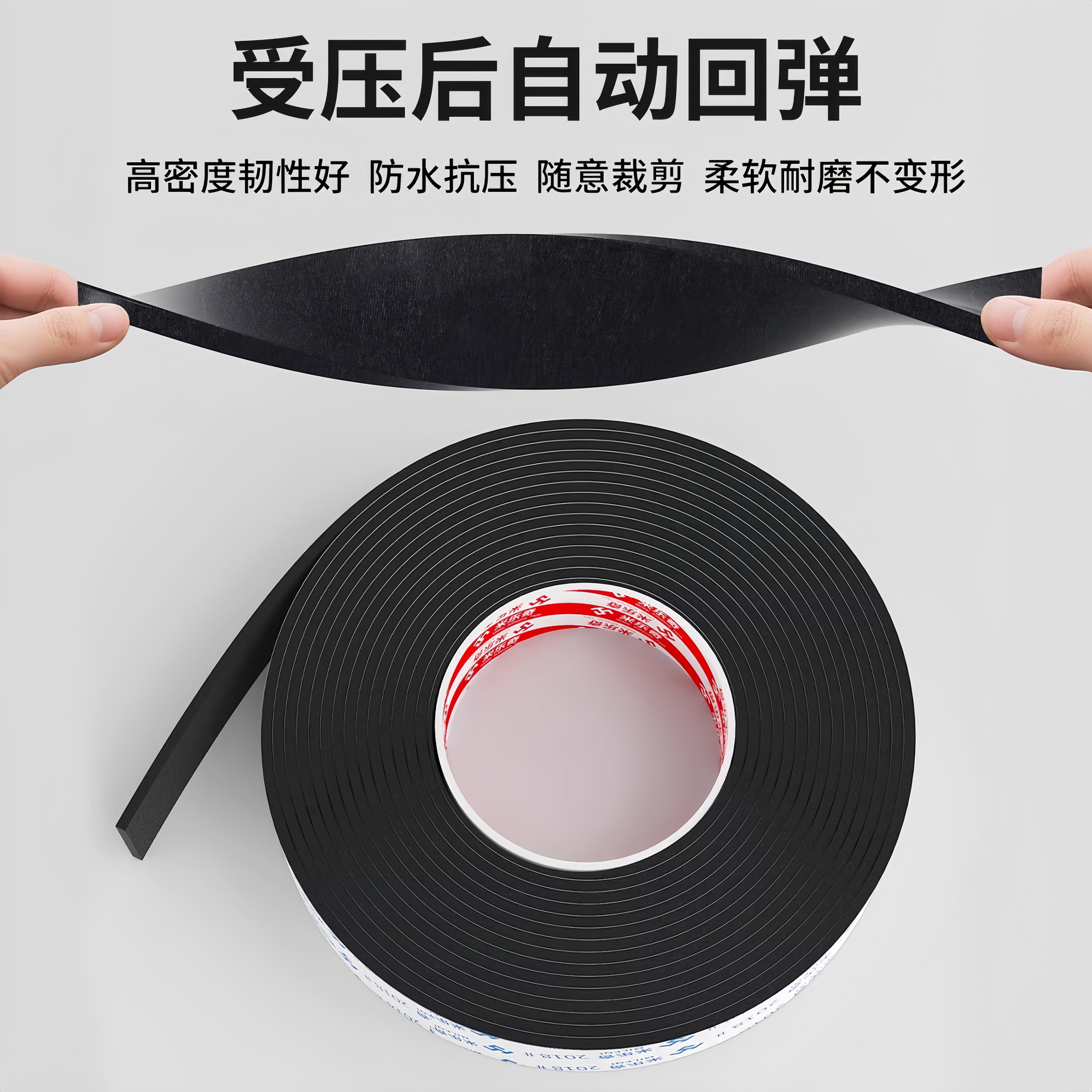 38度黑色EVA泡棉材料加厚高粘海绵单面胶带密封条高密度防水防潮