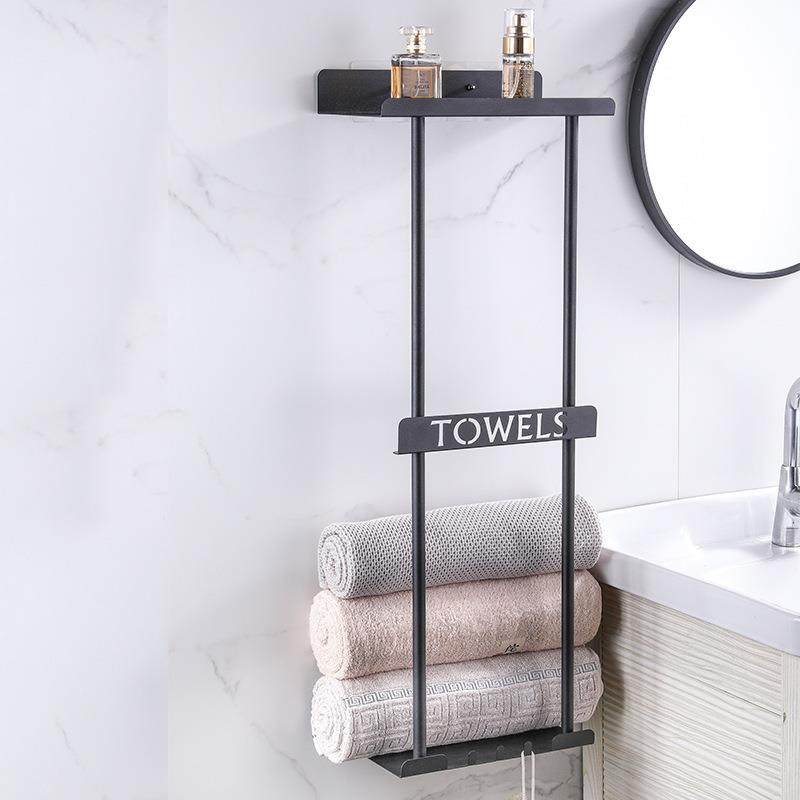 亚马逊浴室免打孔收纳架可伸缩毛巾架厨房淋浴房墙上壁挂式置物架