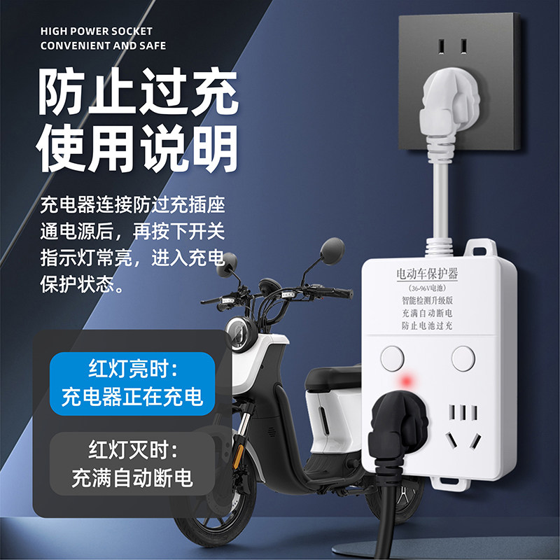 电动车充满自动断电智能插座充电保护器延长线插排防止电池过充