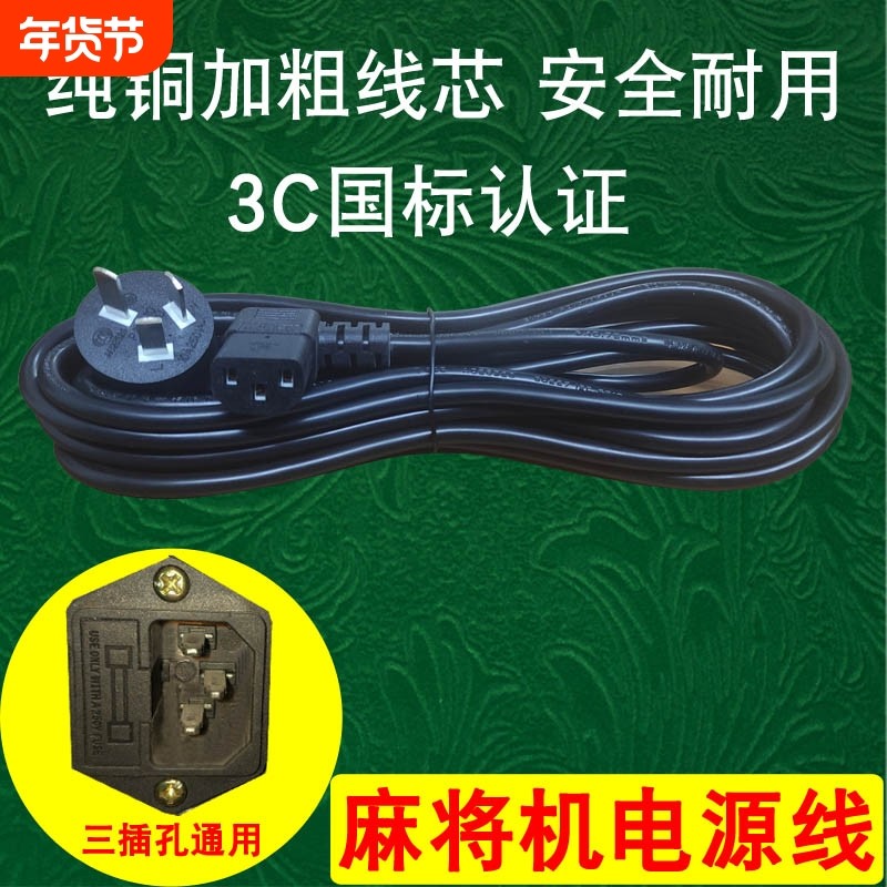 麻将机电源线专用麻将桌电线通用插座线三孔插头线机麻配件加粗线