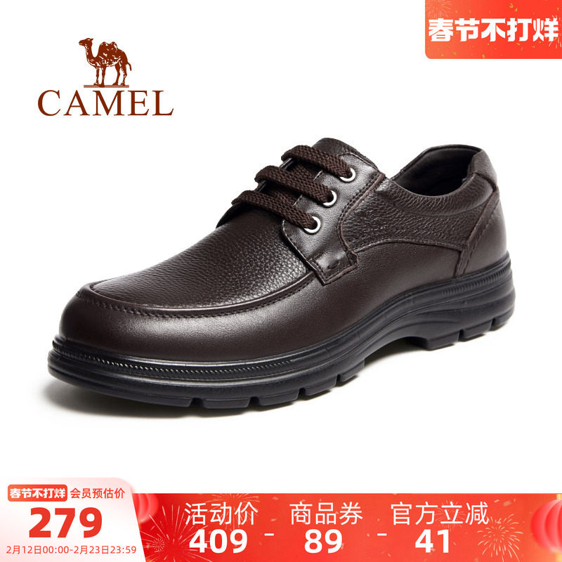 骆驼男鞋秋季新款休闲皮鞋男士真皮商务软底中老年人舒适爸爸鞋子