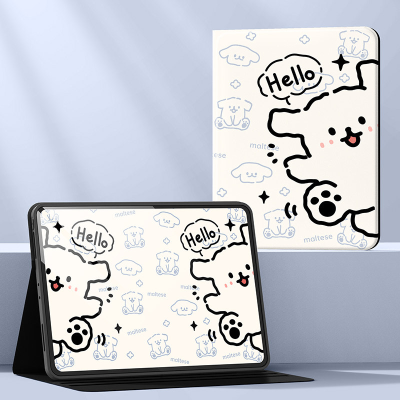 苹果ipad11保护套新款ipadair7平板保护壳mini6/5可爱轻薄迷你4防摔11英寸硅胶双面笔槽卡通帕恰线条小狗外壳
