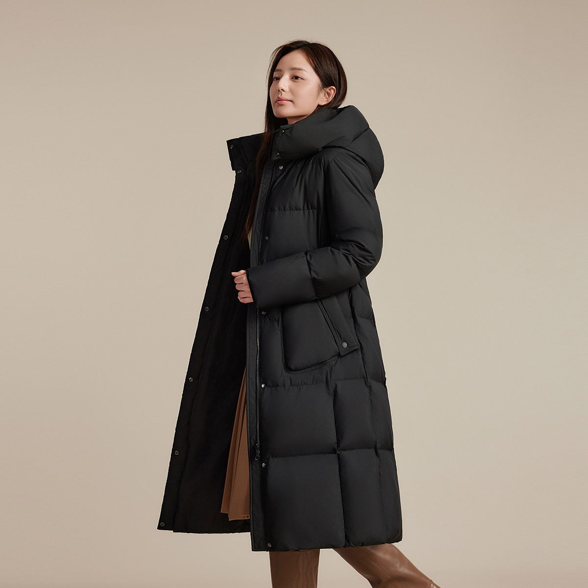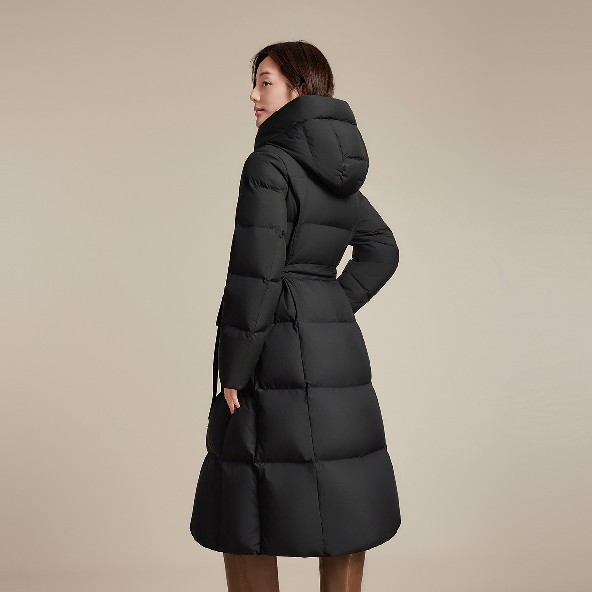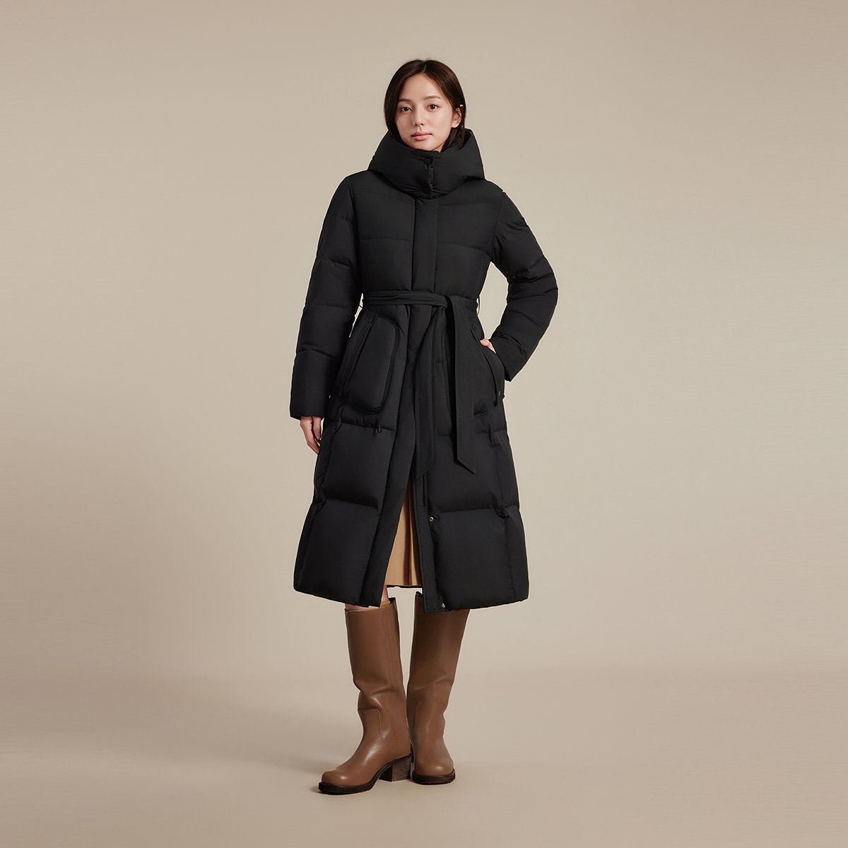 波司登新款羽绒服女过膝长款都市休闲保暖加厚保暖连帽腰带显瘦