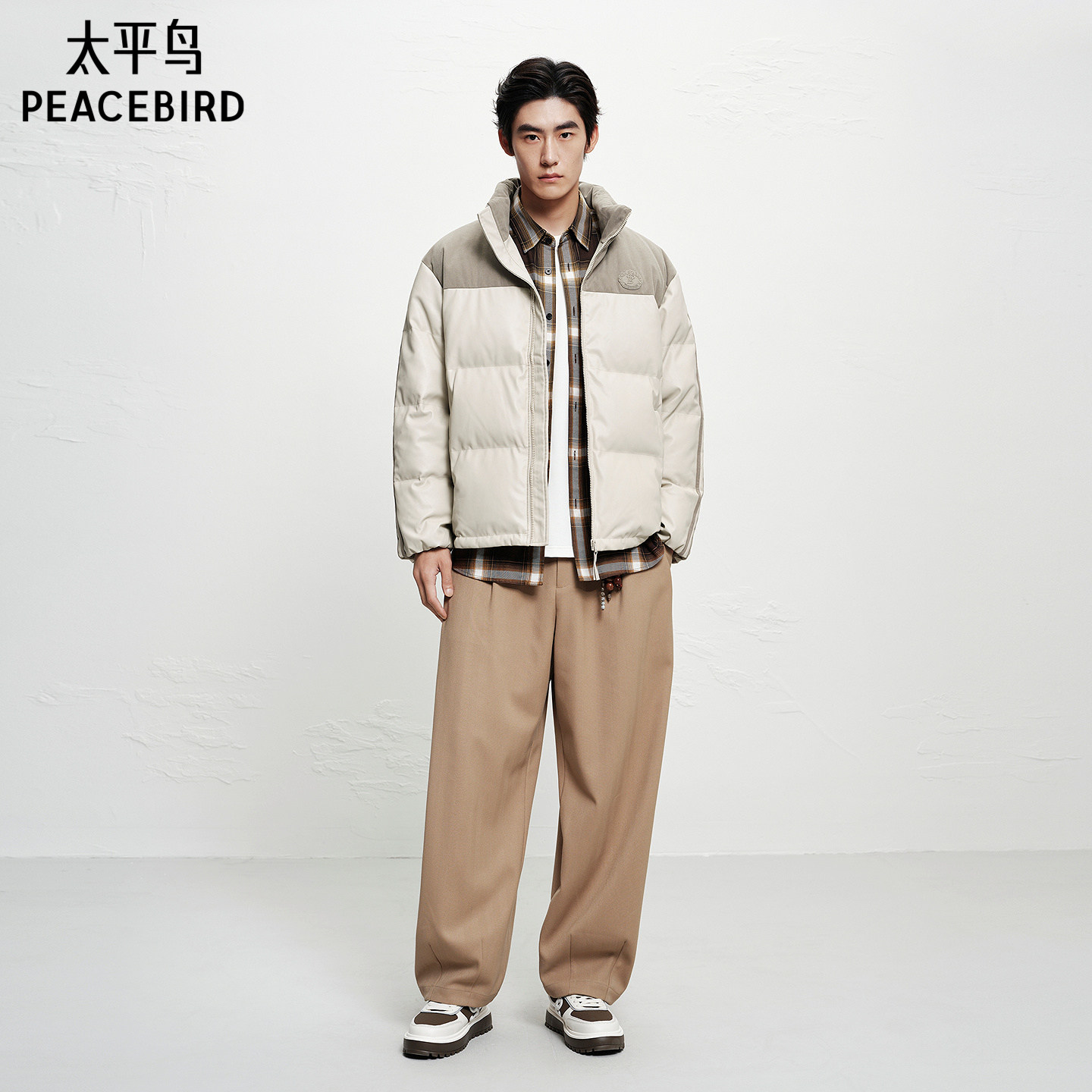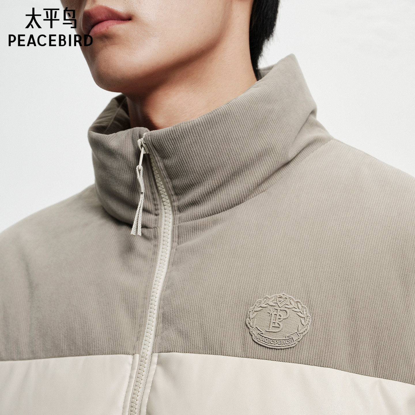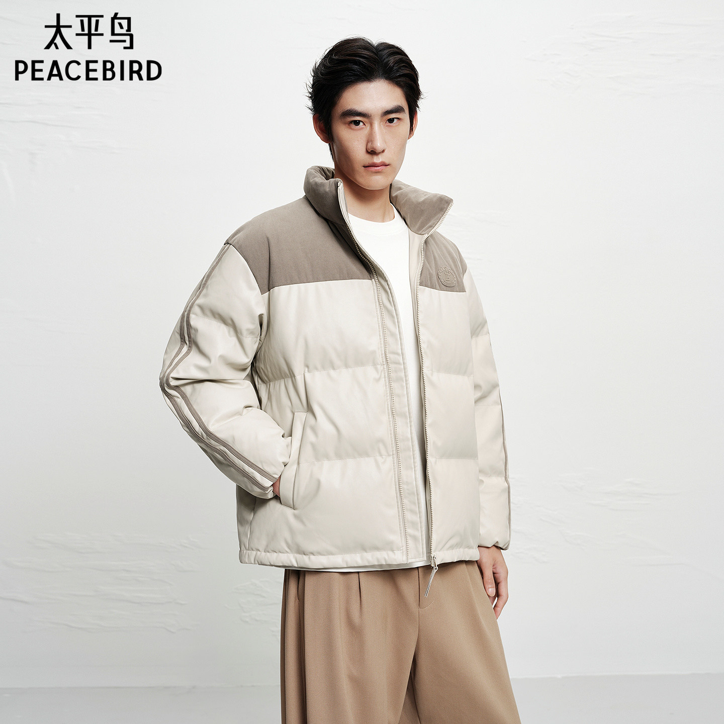 太平鸟男装 羽绒外套男拼接面包服冬季保暖上衣潮流休闲防寒服男