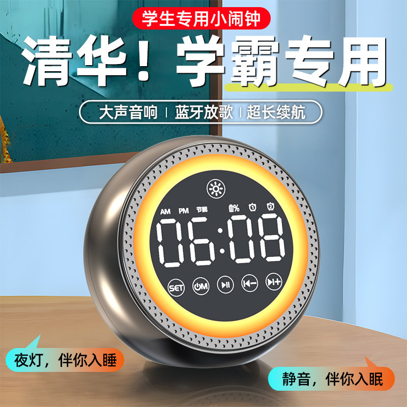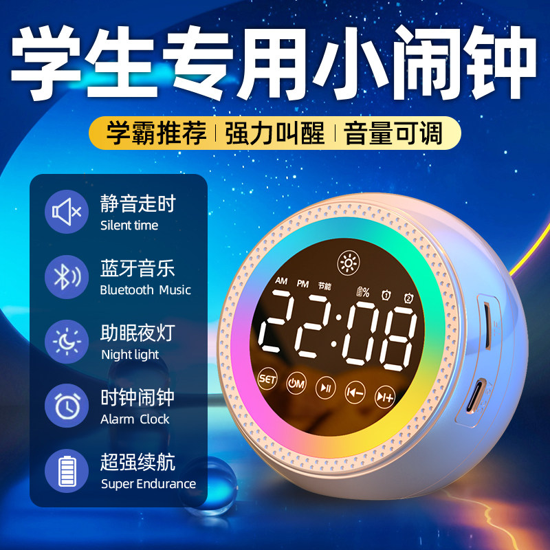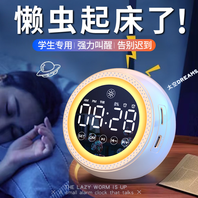 学生闹钟蓝牙音箱多功能护眼夜灯学生不迟到神器连接电脑低音炮