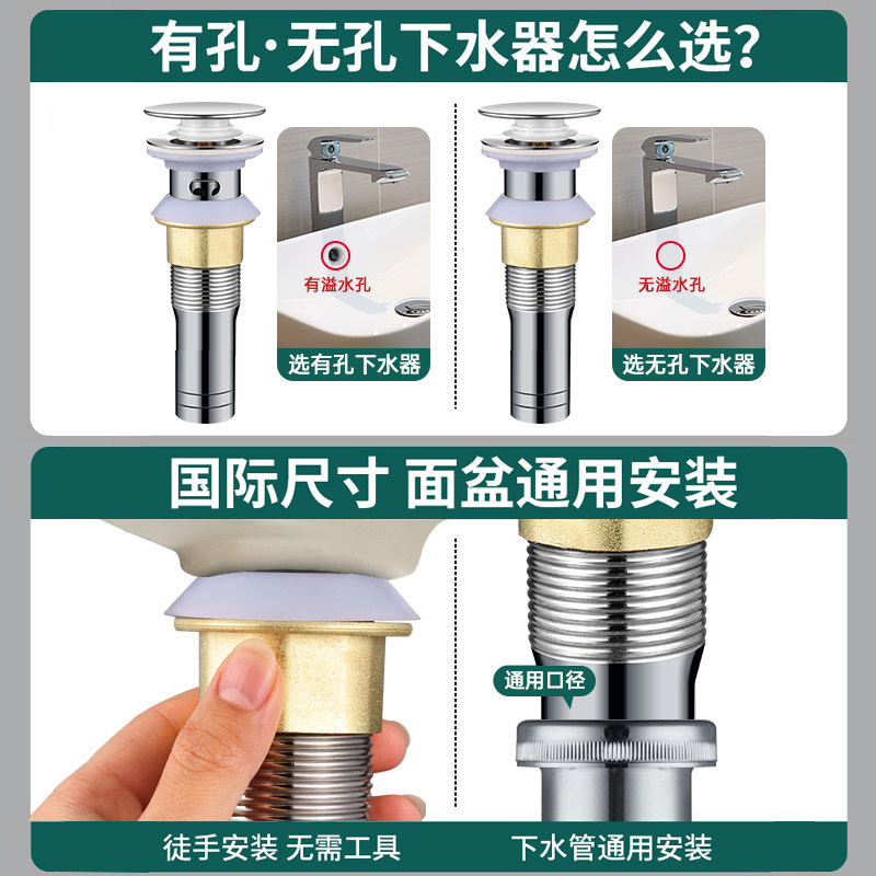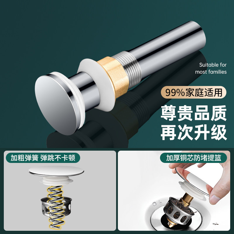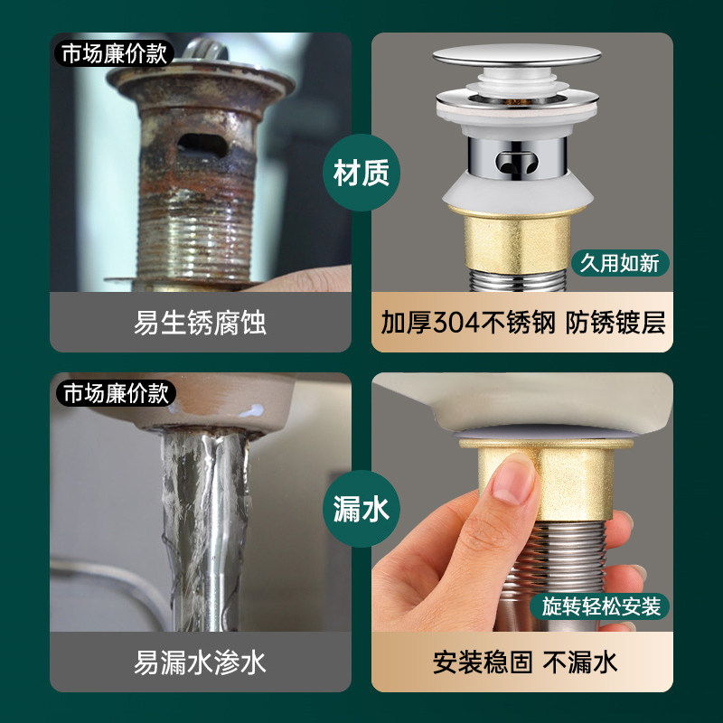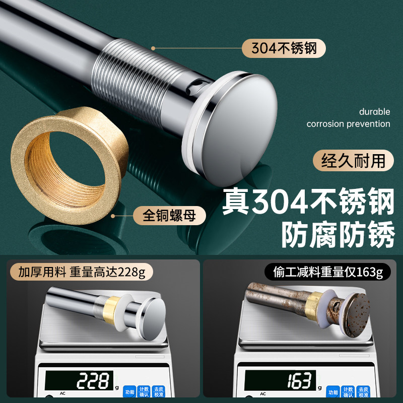 304不锈钢卫生间洗手脸盆弹跳下水器管道配件面盆洗漱台通用防堵
