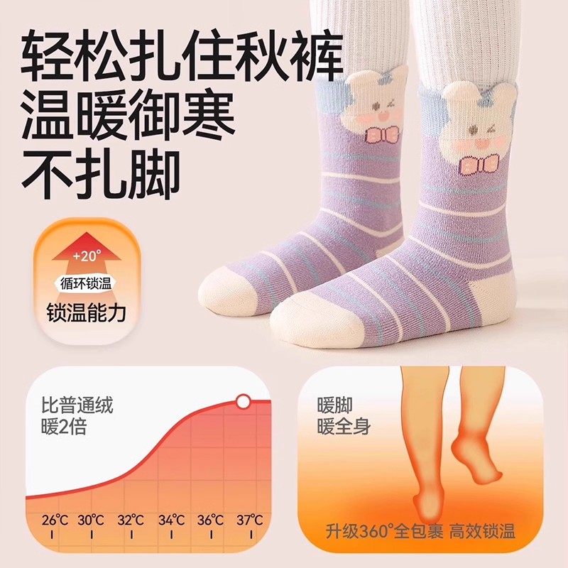 儿童袜子女童女宝秋冬加绒加厚保暖毛圈棉袜中筒袜同款男童无骨袜