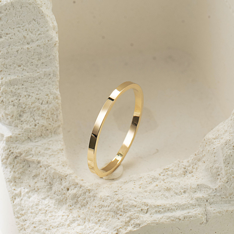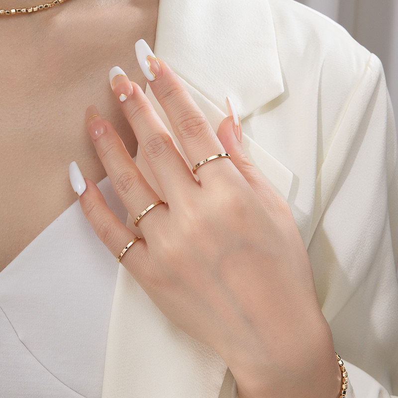 14K包金质感光面素圈戒指女 欧美简约通勤冷淡风叠戴尾戒关节戒