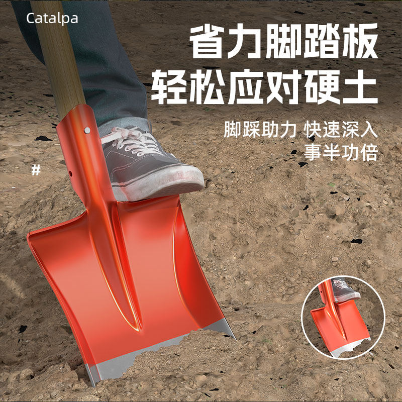铁锹锰钢挖土家用铁铲子锨除雪工具洋铲掀楸平头工地农用加厚方锹