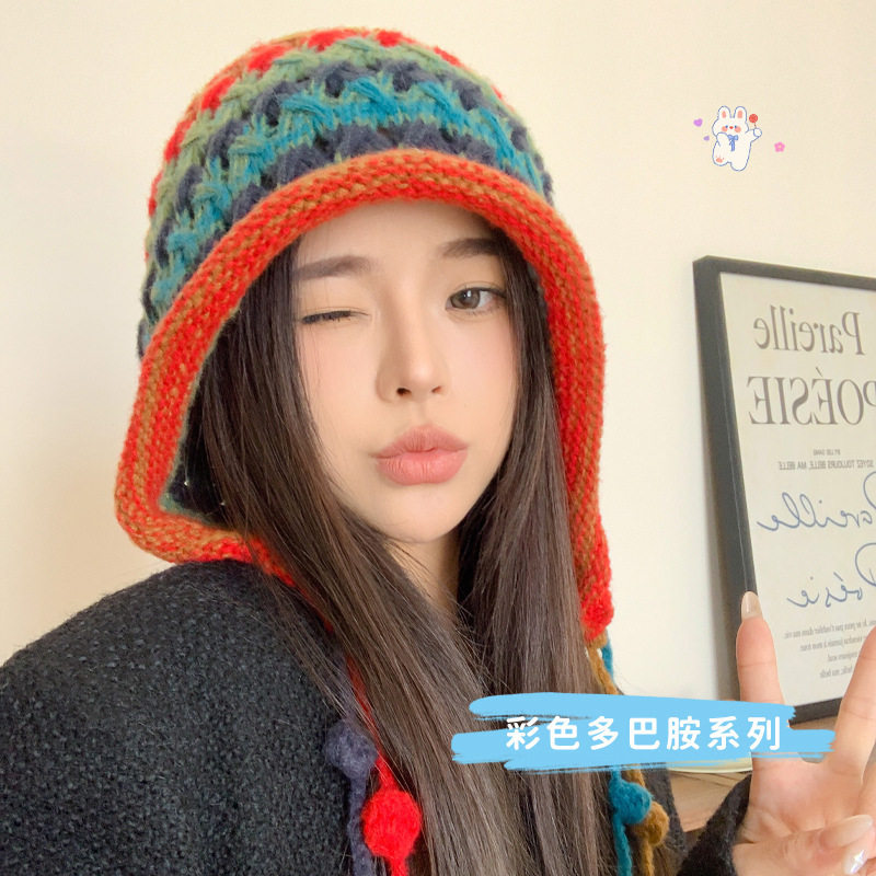 秋冬季多巴胺时尚流苏女毛线帽保暖针织帽子红色彩色显脸小白色