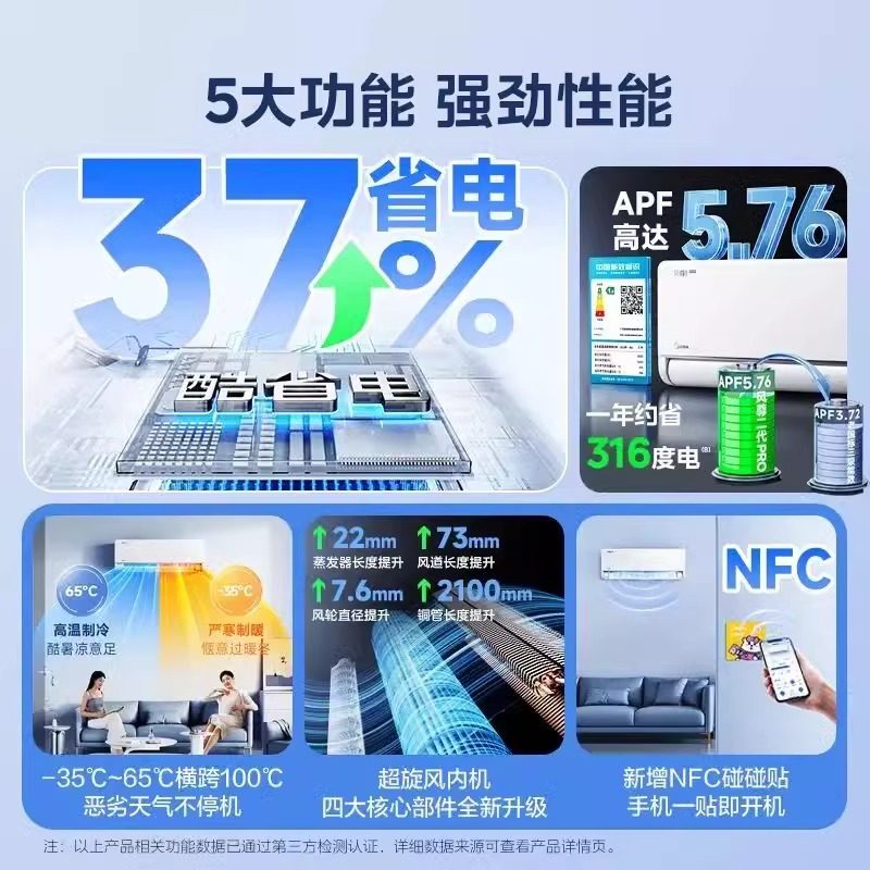 美的酷省电pro大1.5匹一级能效变频冷暖两用家用挂机空调官方正品