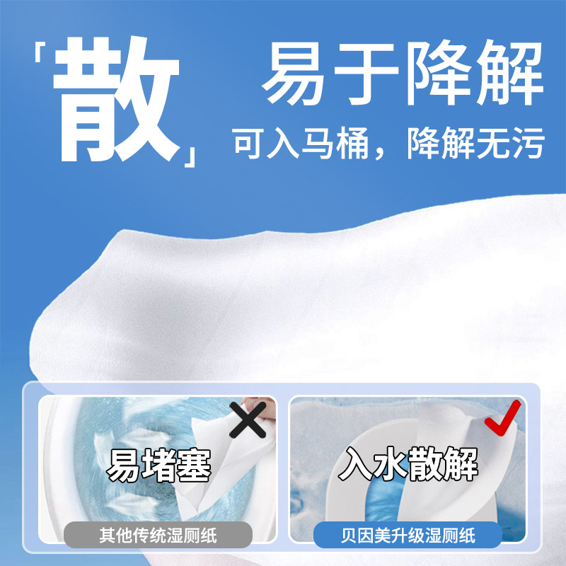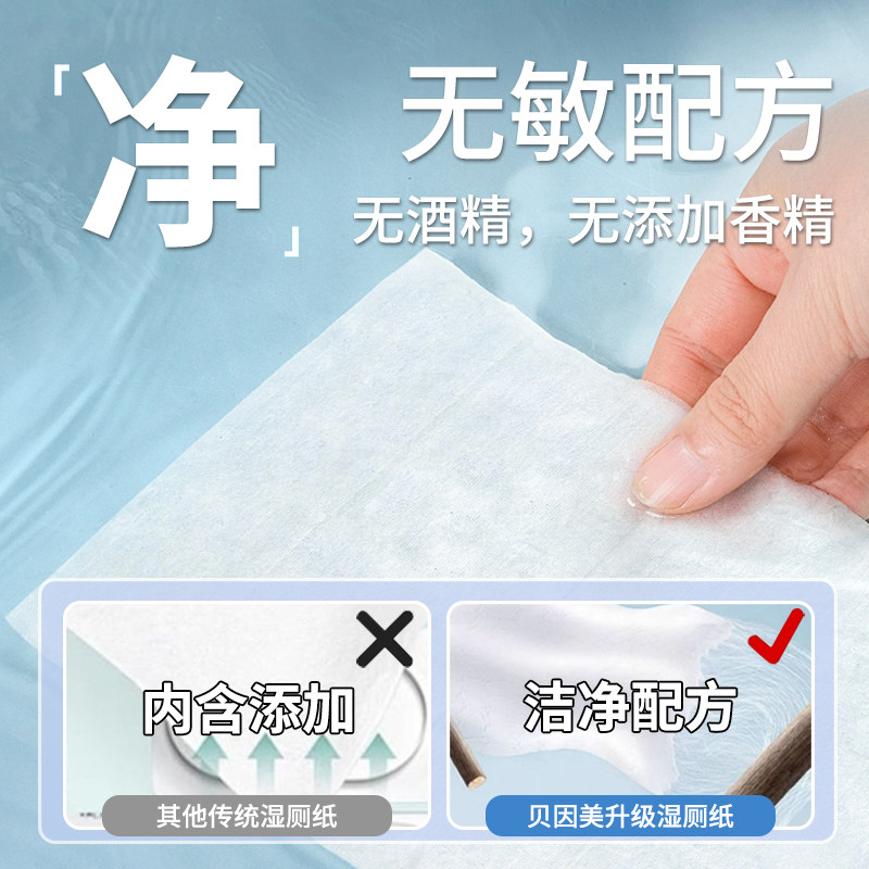 湿厕纸贝因美纯水速干温和亲肤无添加家庭装可冲马桶不掉毛湿巾纸