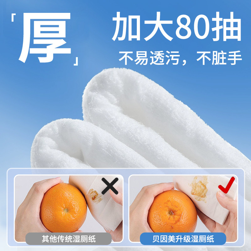 柔邦湿厕纸80抽家庭实惠装湿厕巾男女士专用擦屁屁卫生纸加大加厚
