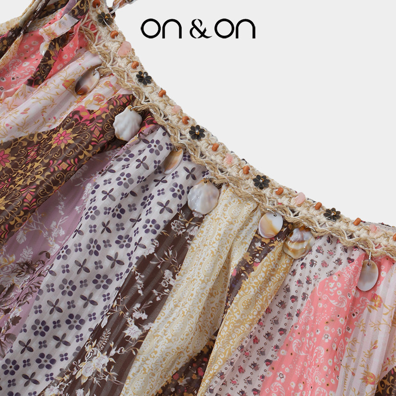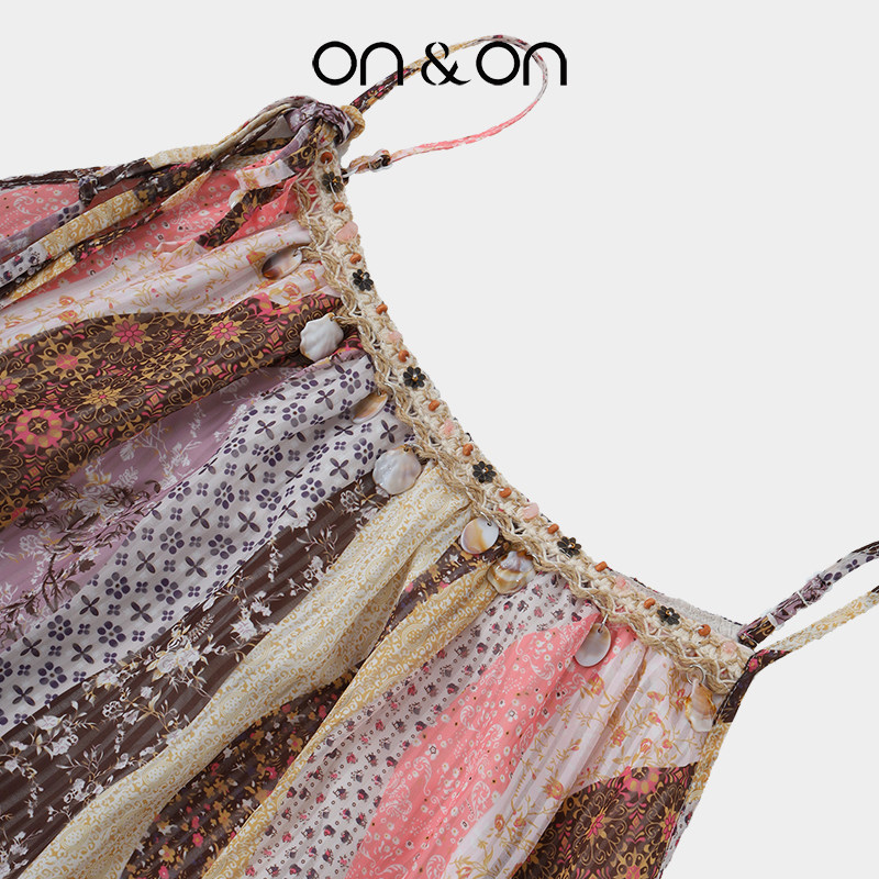 ON&ON/安乃安【游牧风】25夏季新款钉珠系带收腰度假吊带连衣裙