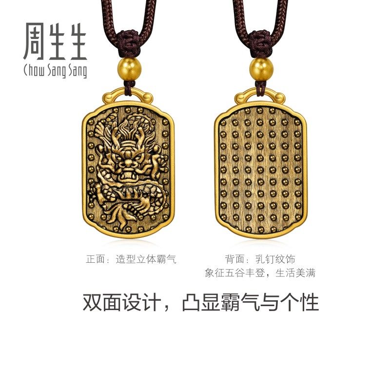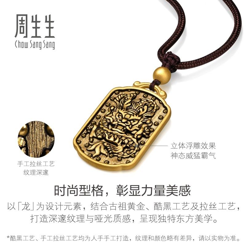 周生生NOIR酷黑系列霸气金龙项链黄金足金吊坠项链94426Z