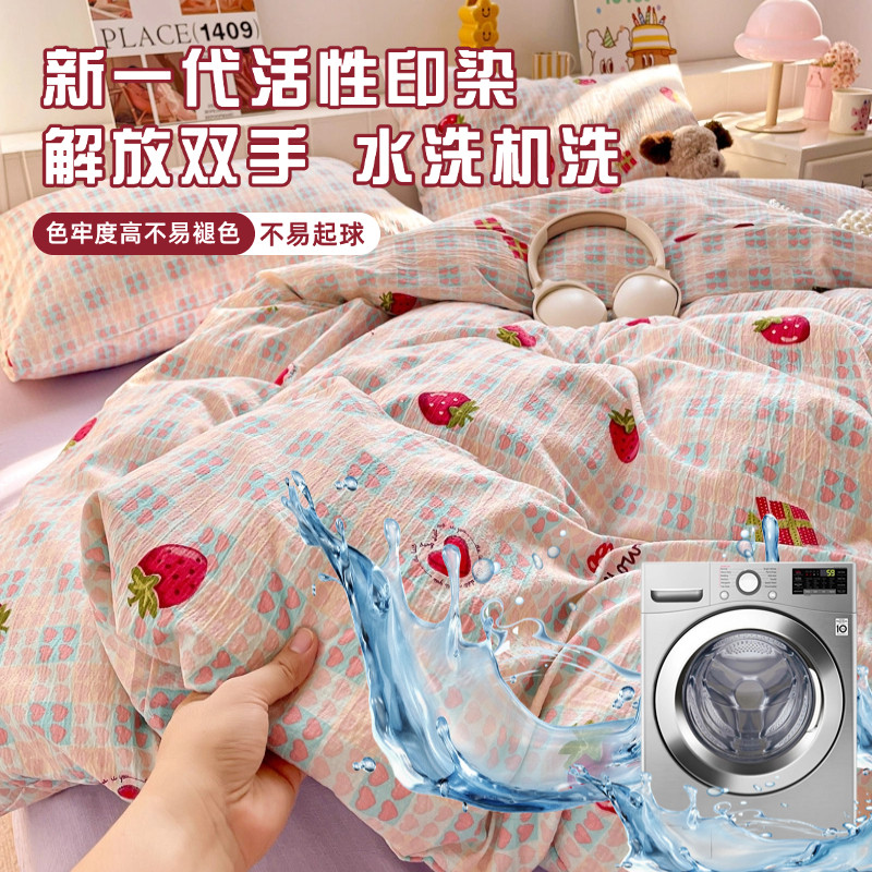 A类水洗棉双层纱四件套被罩非全棉纯棉床单人学生宿舍被套三件套