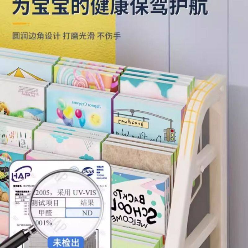 儿童书架落地置物架家用阅读区绘本架多层玩具收纳架简易宝宝书柜