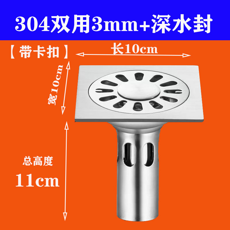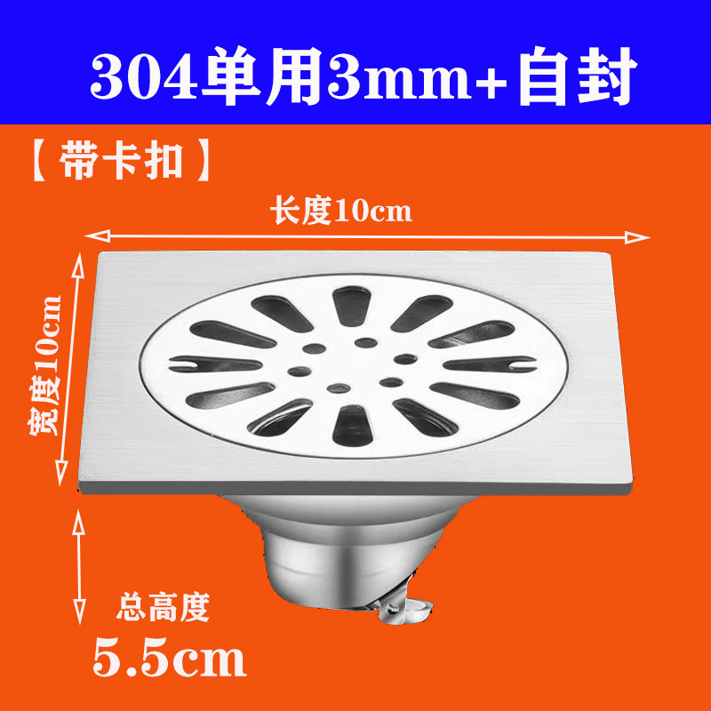 家用304不锈钢地漏卫生间淋浴房阳台防臭地漏下水管方形加厚