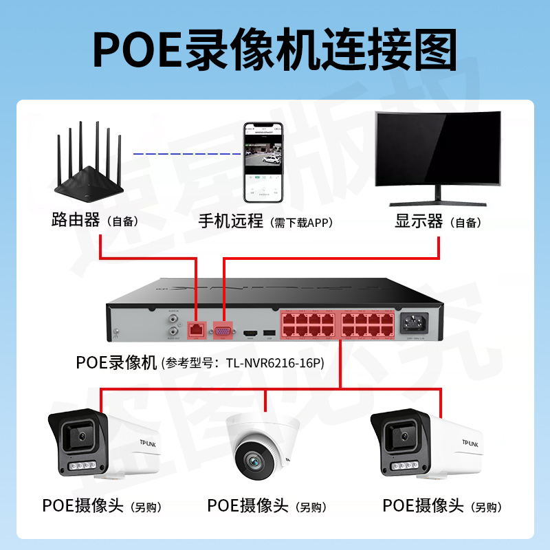 普联tplink网络硬盘录像机监控POE供电8/16/32/48/64路有线安防无线摄像头视频存储主机家用NVR高清4K多盘位