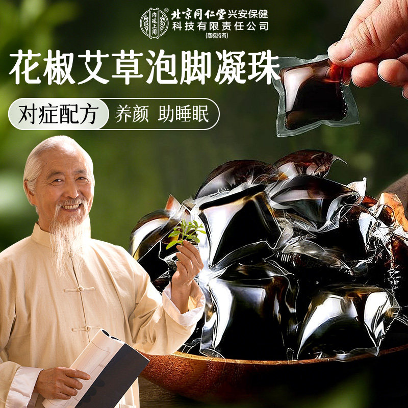 北京同仁堂艾草泡脚药包凝珠去湿气排毒助睡眠生姜花椒中药足浴包