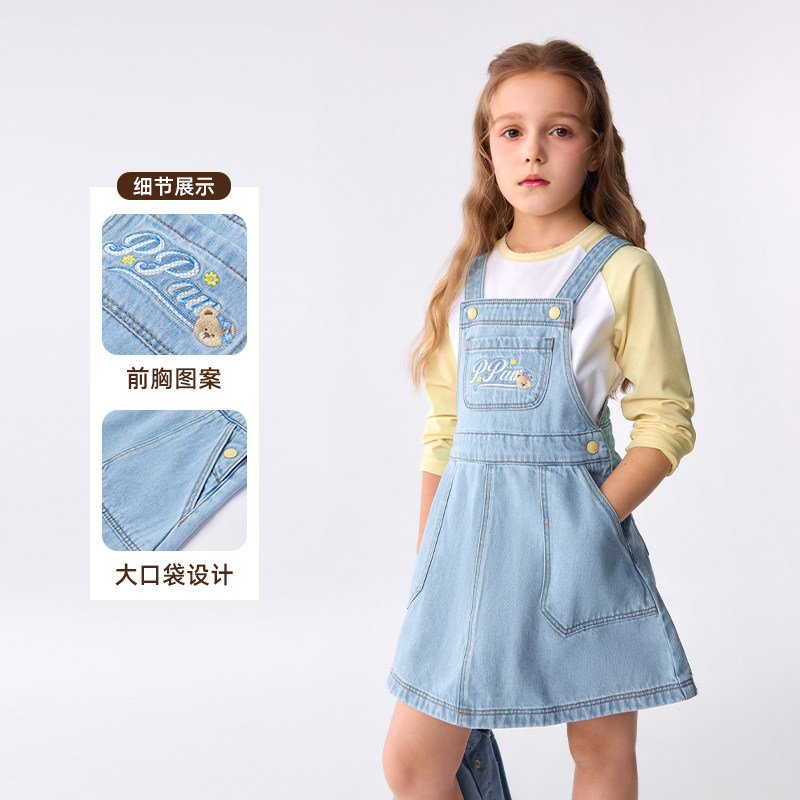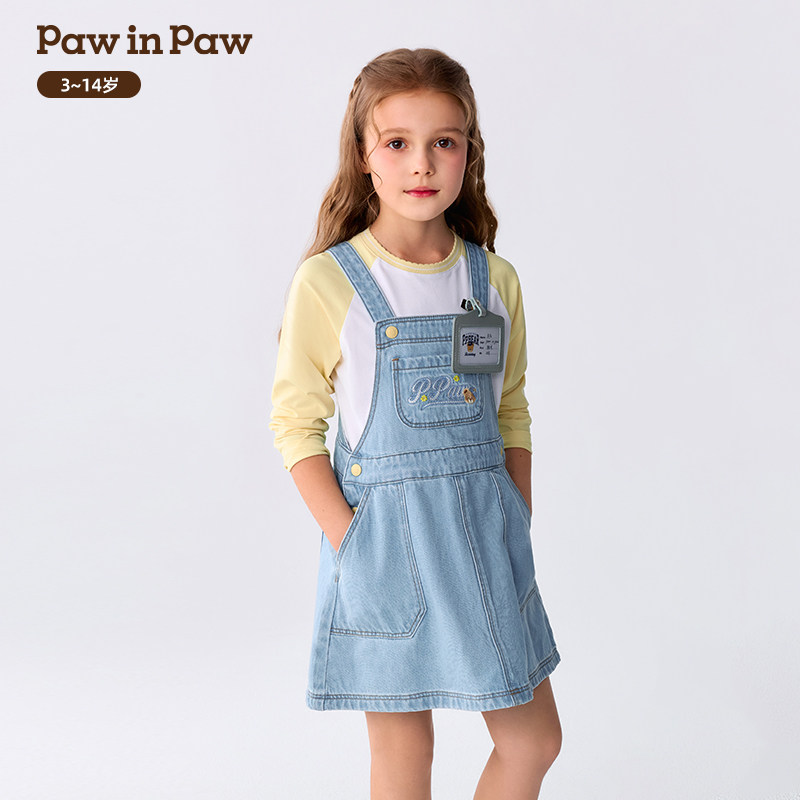 【全棉】PawinPaw卡通小熊童装26年夏季新款女童牛仔背带裙宽松