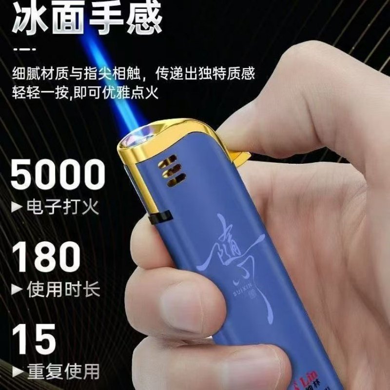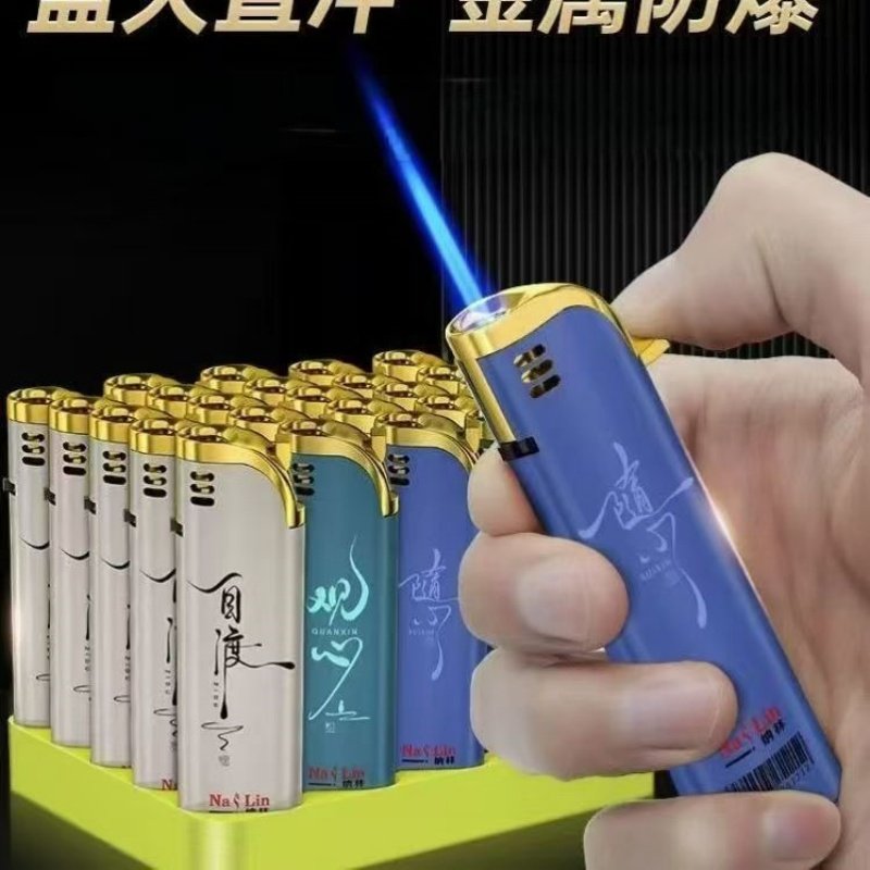 正品新型新款大号高档蓝焰直冲防风打火机批发包邮家用独特火焰