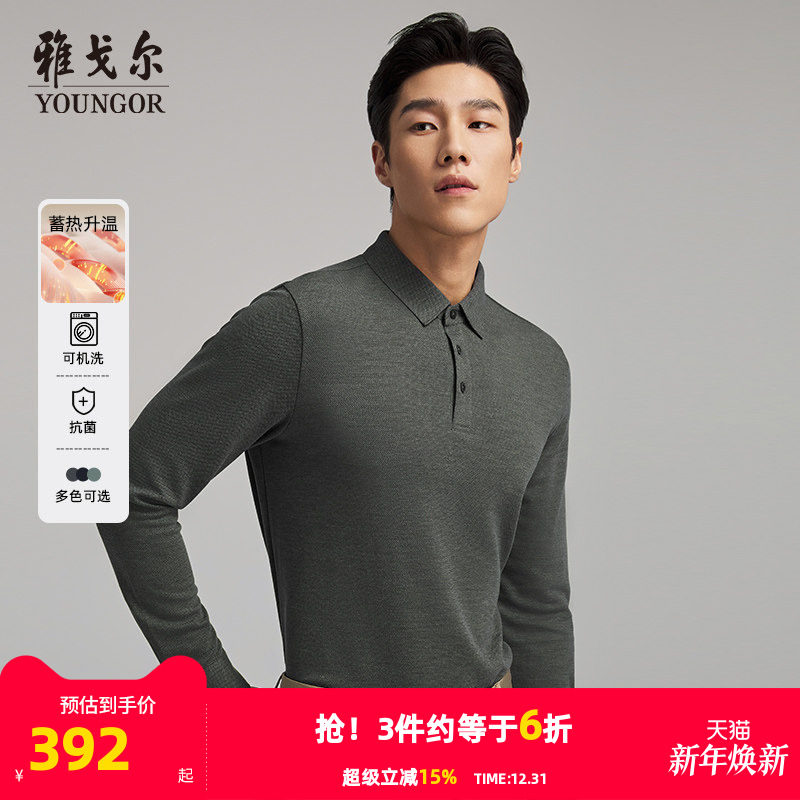 【蓄热升温+可机洗羊毛】雅戈尔男士秋冬莫代尔长袖POLO衫翻领T恤