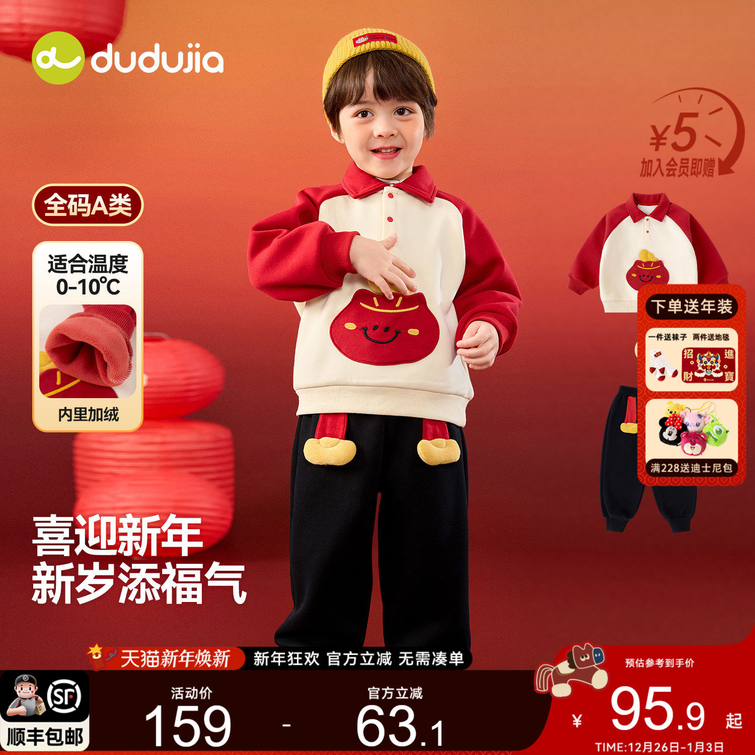 dudujia宝宝周年礼服新中式男童唐装红色女童拜年服男宝套装年装a